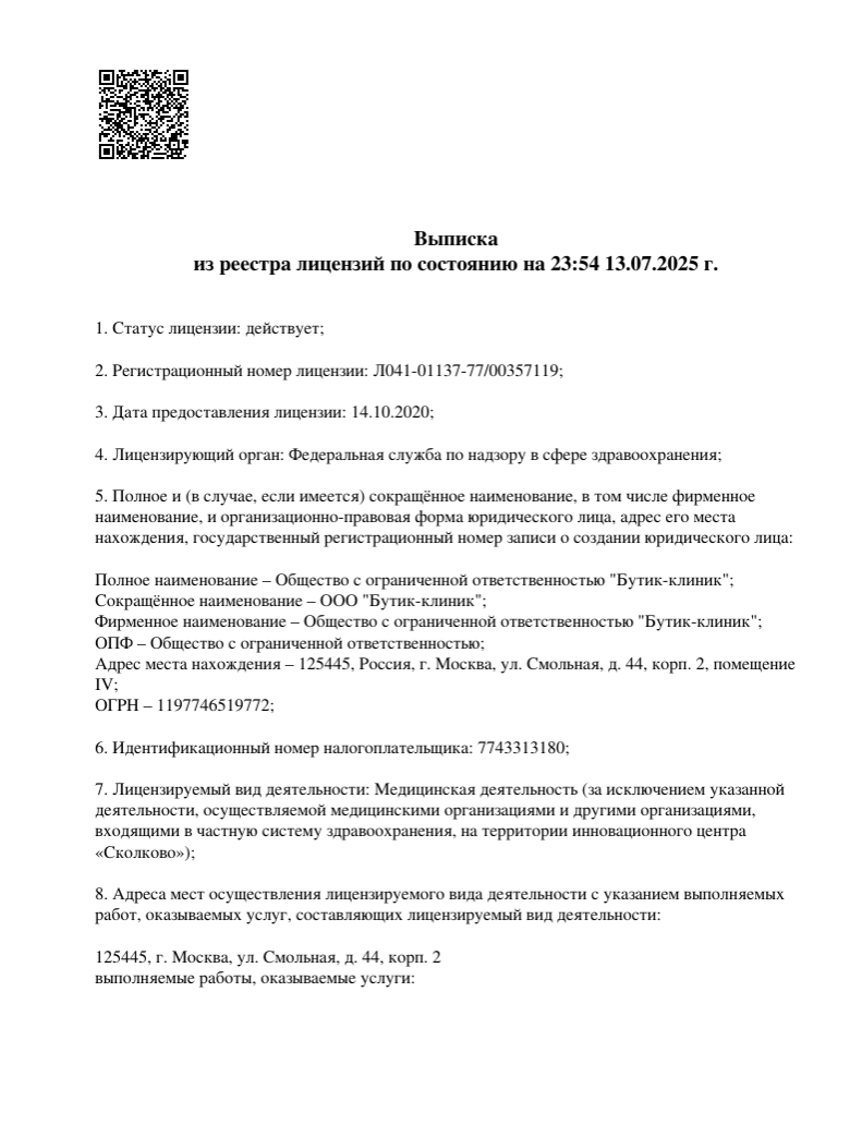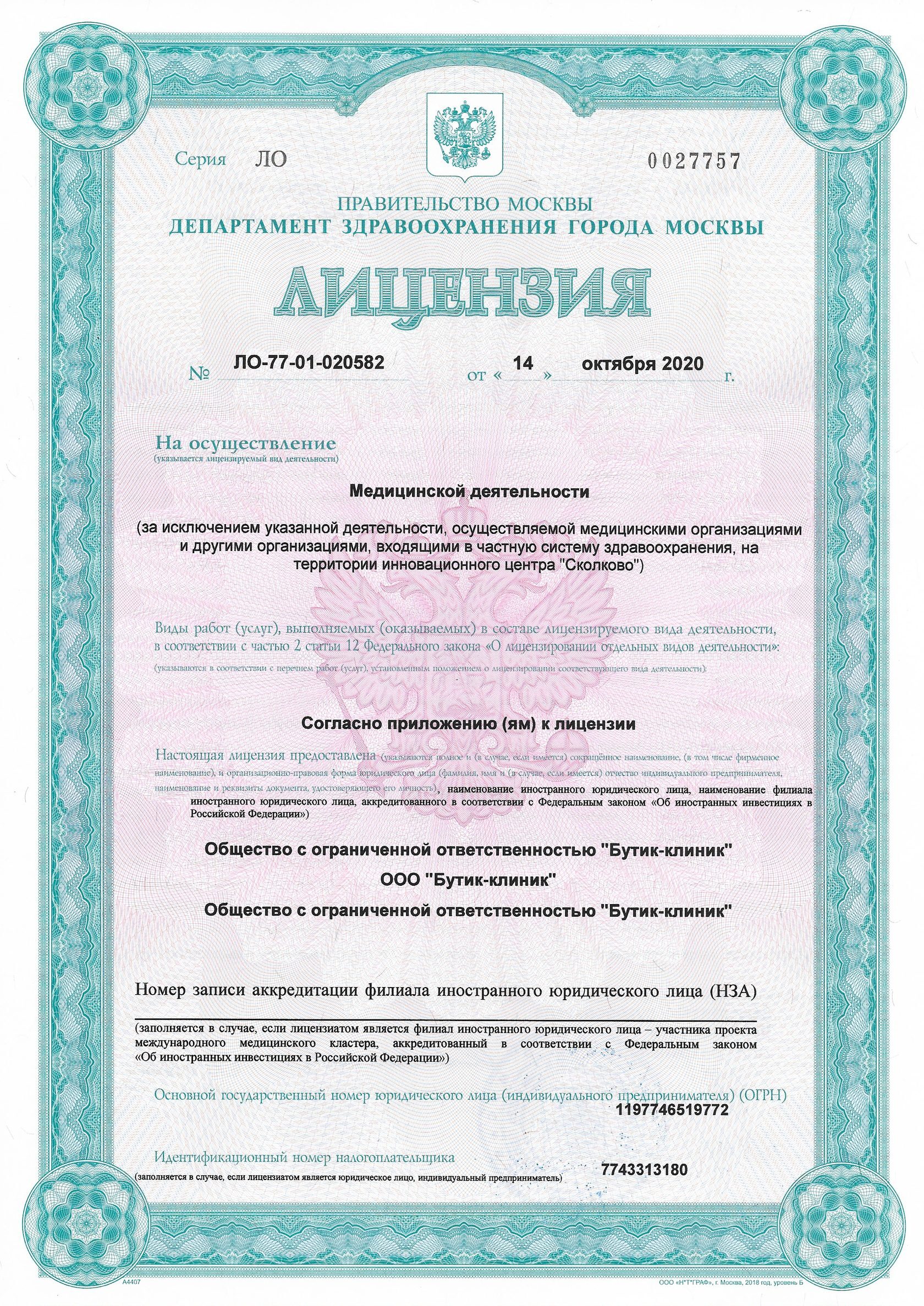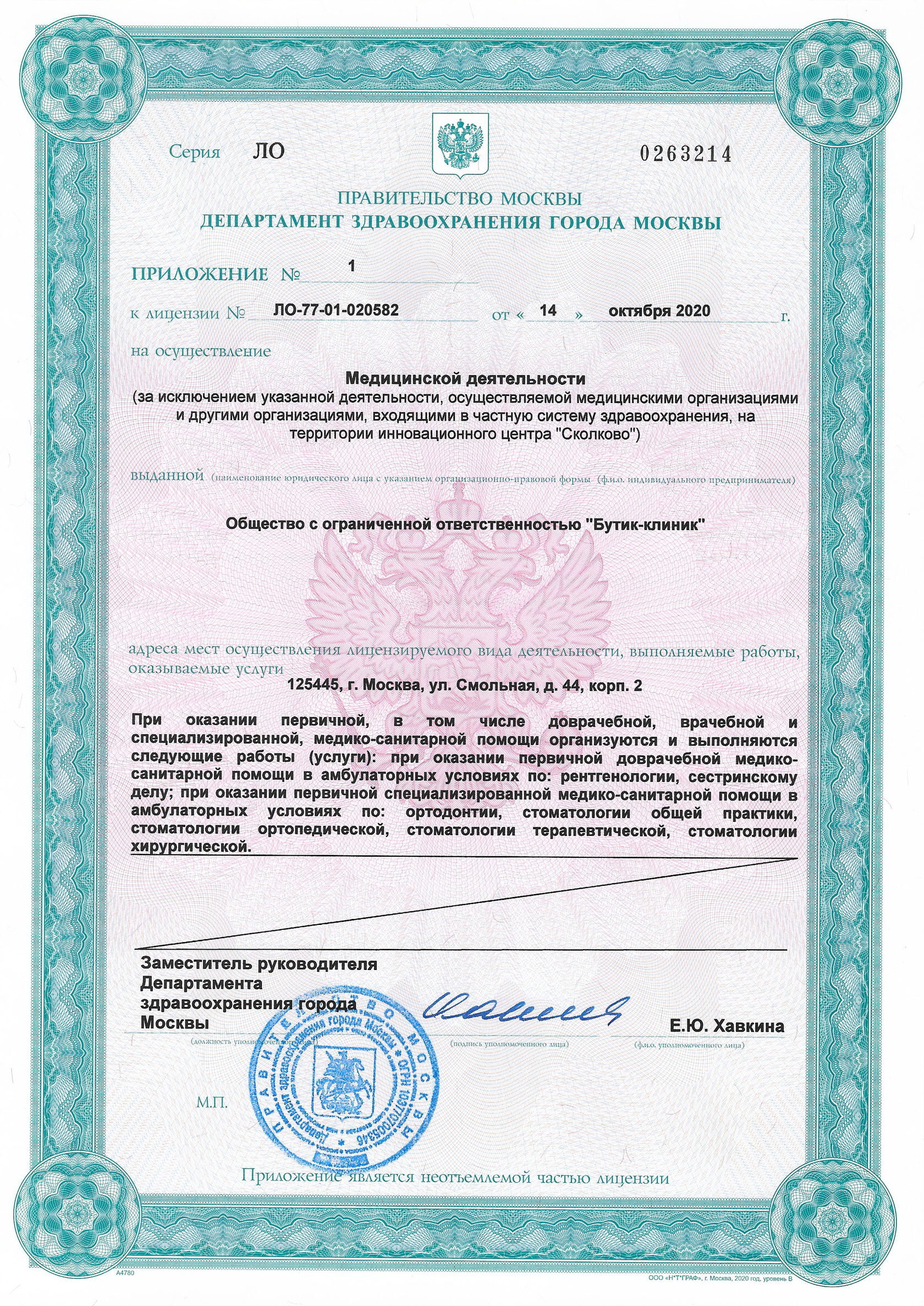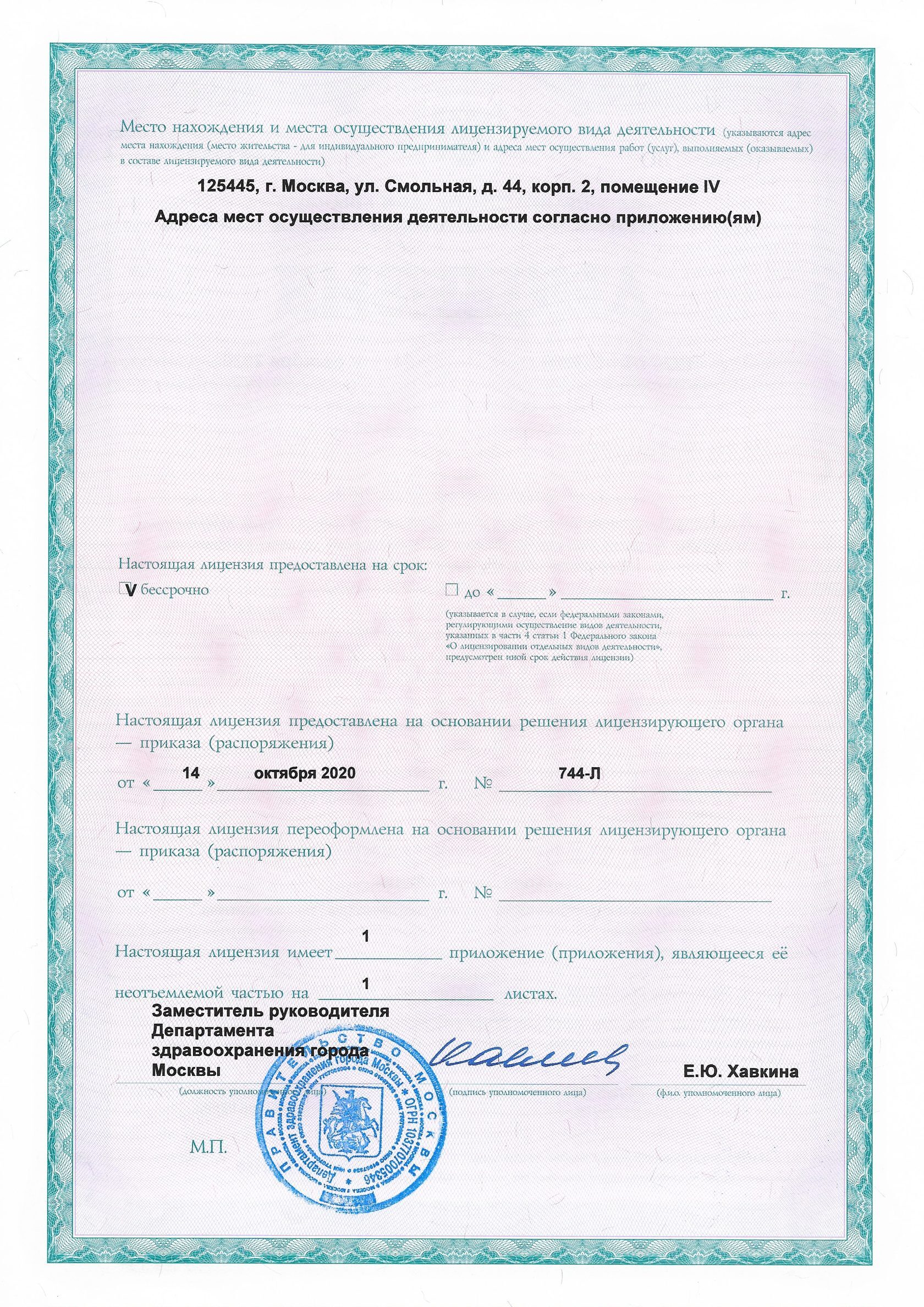 Лицензия на медицинскую деятельность Л041-01137-77/00357119 от 14.10.2020 г.