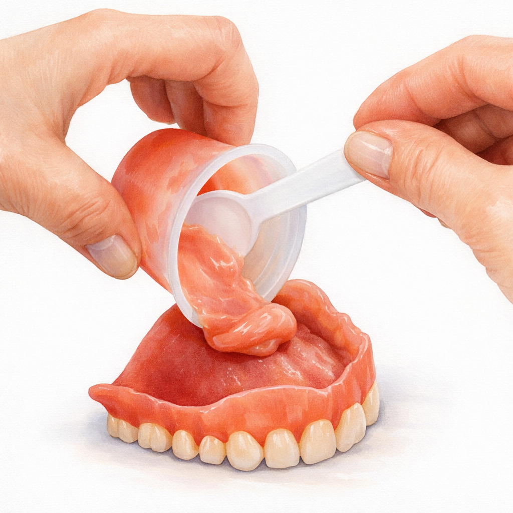 Как временная мера клей может помогать, но рост потребности в нем считается прямым поводом проверить посадку протеза. Руководства ACP отдельно предупреждают: если для прежней фиксации нужно всё больше адгезива, пациенту нужен осмотр у стоматолога.